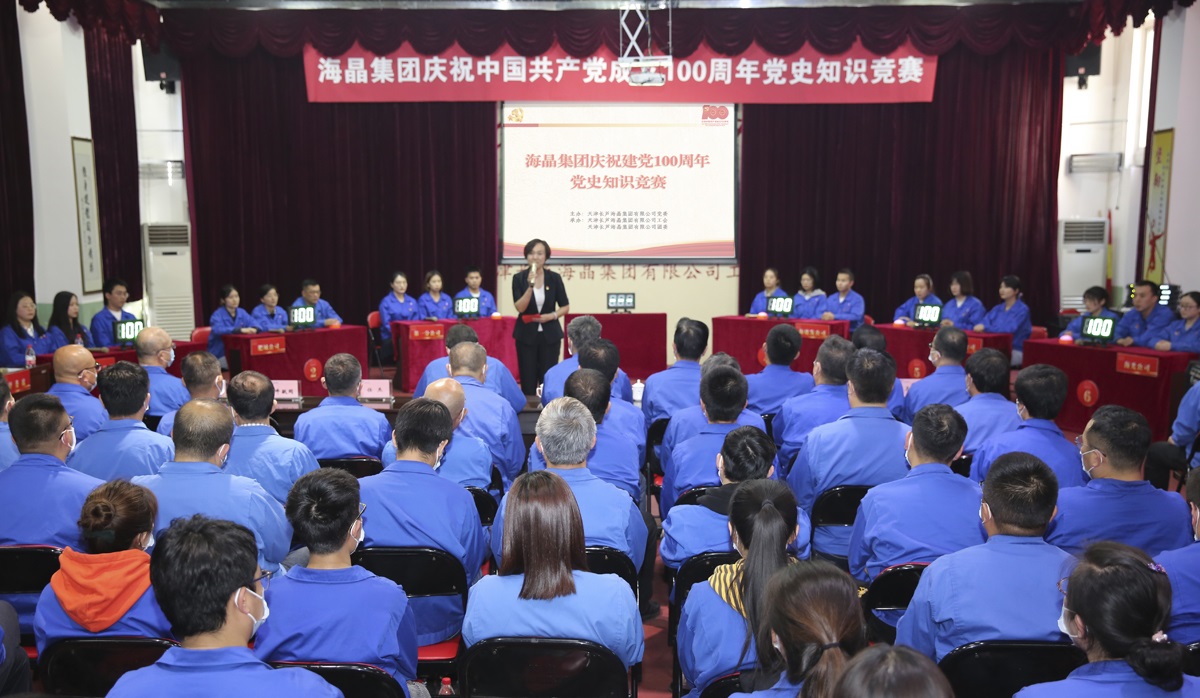 并選拔3名選手參加了市國資委和集團黨委黨史知識競賽,分別取得了第五名和第一名的好成績。公司黨委開展了“海晶故事”之——榜樣的力量“企業標兵”事跡展播, 錄制了5名標兵事跡,通過微信工作群、公司內部OA系統和《塘沽鹽工》進行展播和宣傳。工會舉辦了勞模事跡報告會暨公司勞動競賽和降本增效活動推動會,有4名勞動模范代表結合各自工作實際,從技術創新、原鹽技改、崗位奉獻和降本增效等方面作了精彩的報告,在公司上下掀起了弘揚勞模精神,傳遞榜樣力量的高潮。公司黨委把每季搞好職工思想分析作為黨史學習教育的重要工作,對職工反映的重點問題進行梳理匯總,提出解決的措施及對策,形成職工思想分析報告,為領導決策提供參考。6月26日,公司召開了慶祝中國共產黨成立100周年大會,表彰了公司“十三五”黨員先鋒、優秀黨務工作者和先進基層黨組織;表彰了公司“奪杯賽”優勝黨組織。
