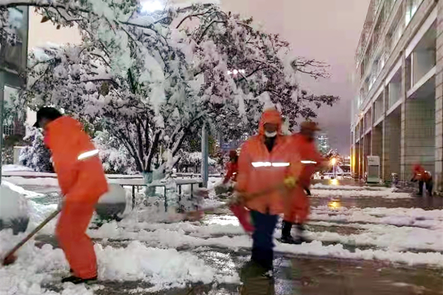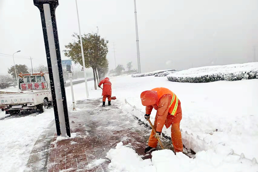 環衛公司成立了775人的清雪隊伍,儲備鹵水6500立方米、融雪劑100立方米,投入各類清雪設備100余臺(套)。清雪過程中,共灑融雪劑90車次、1800余立方米,保證了主干道路的暢通;