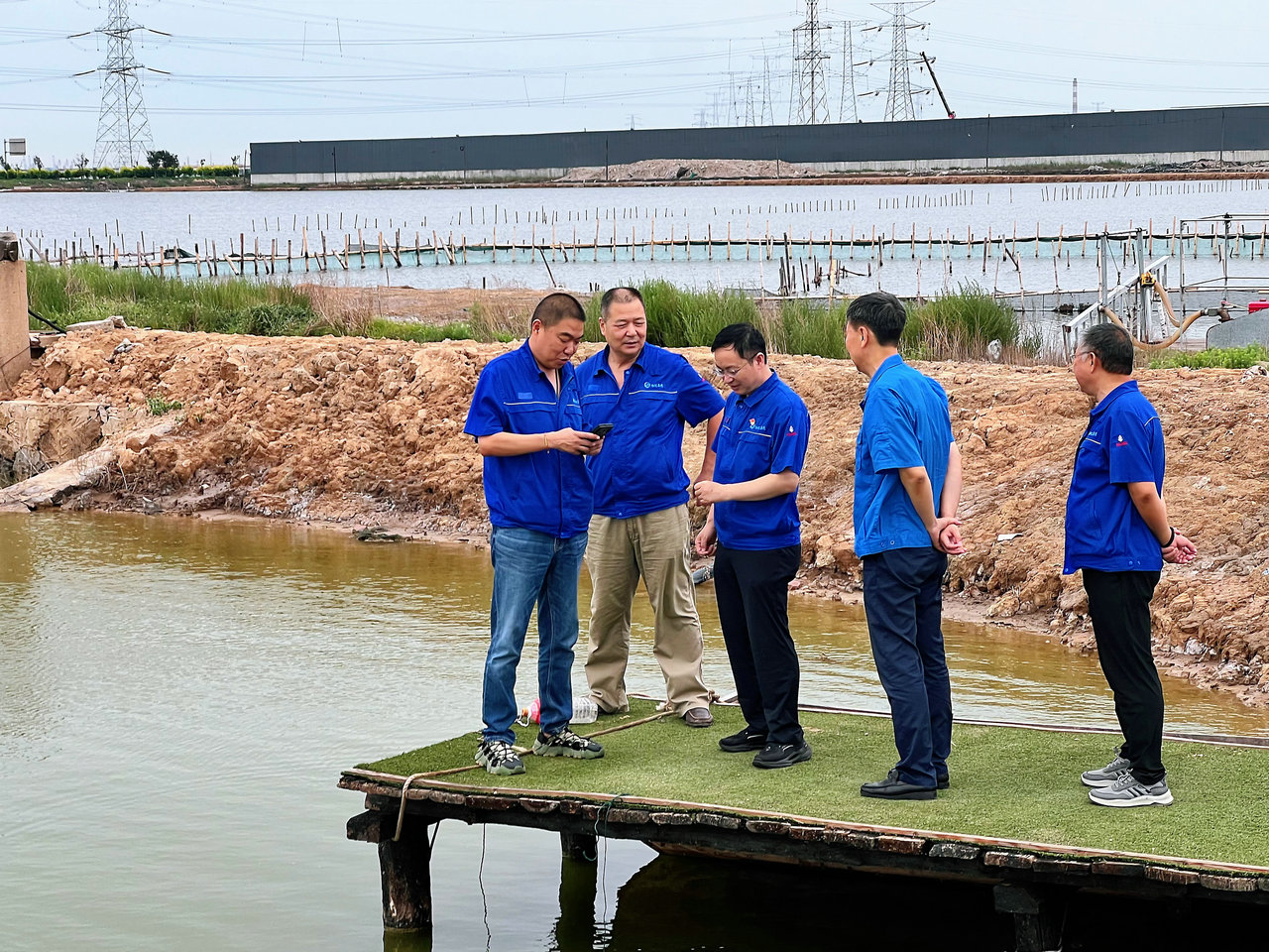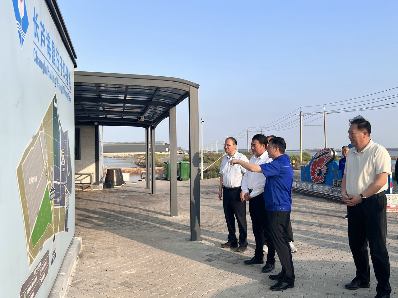 天津市濱海新區區委副書記李龍帶隊到博睿公司長蘆海晶汪子蝦基地調研指導工作,公司領導陪同